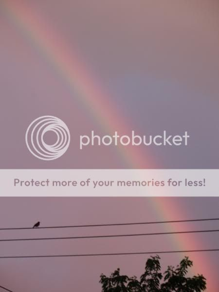 Here is the beautiful rainbow that was over our house the other day. Does that mean something special if you have a rainbow over you house.